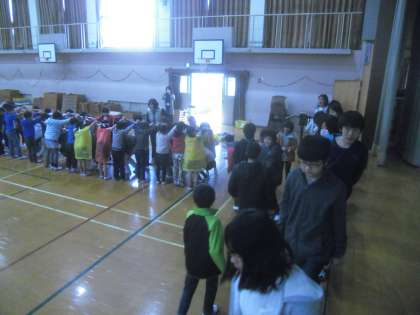 1〜5年生がアーチを作って,言葉をかけて,見送りました。