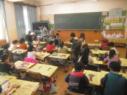 3月15日は,1年2組や2年2組で,作品バッグ作りをしました。