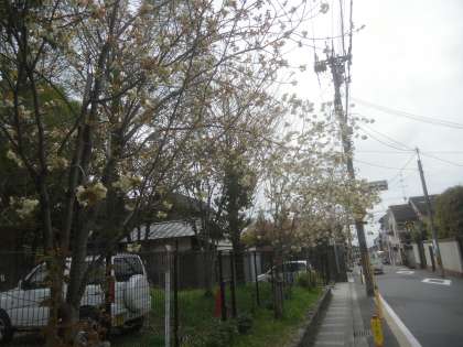4月13日(水)正門の左右に5本植えてある「ウコン桜」が,見頃を迎えています。花が咲き始めると緑ですが,だんだん黄色く色づいてきます。