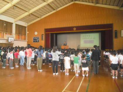学校長からは,昨年度卒業生の植えてくれた「アンネのバラ」が,正門近くで咲いている話から,悲しい戦争が終わって,良い国を作るために,憲法が作られた話をしました。