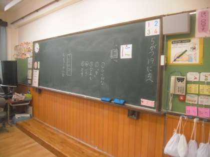 5月19日(木)1年2組国語の学習は,ひらがなの「に」を学習した後,日直の札を書きました。