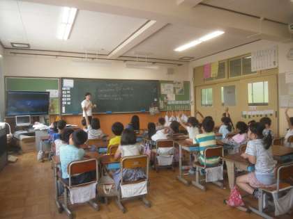 5月23日(月)2年1組音楽は,「たぬきのたいこ」の歌詞を聴き取りながら,曲を覚えていきました。
