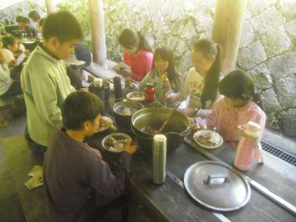林業体験の後は、すぐ近くの野外炊飯場で、野外炊事です。