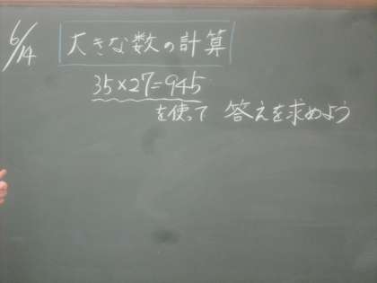 35×27=945という式と答えがわかっていることを使って,もっと大きな数の計算の答えを考えます。