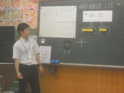あわせていくつになるか,数図ブロックを操作して式の書き方を理解する。