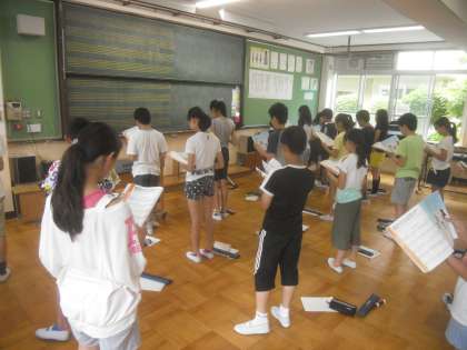 6月21日(火)6年1組の音楽は,「広い空の下で」を歌いました。