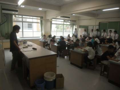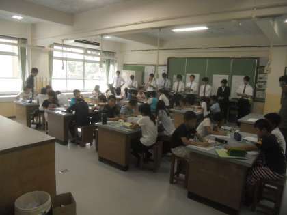 6月22日(水)5時間目5年2組の理科は,小大連携事業の一環として,立命館大学から,学生さんや先生が,参観に来られました。