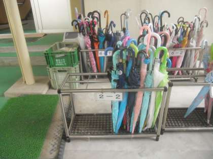 今日は,雨が降って,かさが増えましたが,しっかりとそろえることができました。