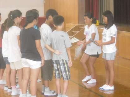 7月11日(月)オムロワールドの最後は,計画委員会から,先日行われた縦割りグループのクイズラリーの表彰がありました。