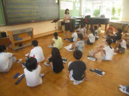 9月6日(火)6年2組の音楽は,「サマーコンサート」として,夏休みに練習してきた演奏の発表会の後,オムロソングを歌いました。