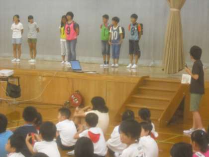 あいさつについては,寸劇のクイズを交えて,みんなに呼びかけをしました。