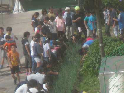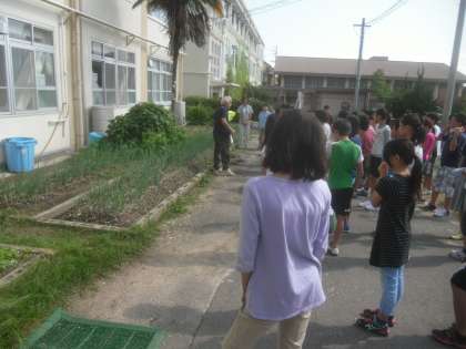 ゲストティーチャーから,最近の日照不足の話をしてもらってから,土寄せを習いました。