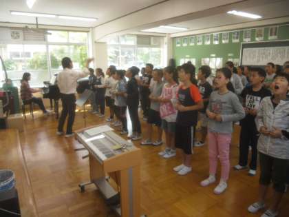 10月12日(水)6年学年音楽で,オムロソングの練習をしました。
