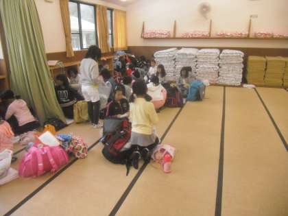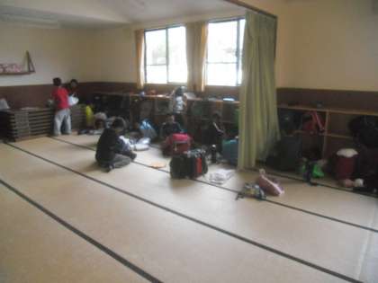 90畳の部屋の荷物をいつもきれいに整理して、次の活動に備えます。