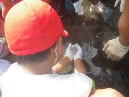 ヤドカリ、カニ、魚、ウミウシ、アワビの稚貝などの貝、うになどを見つけました。