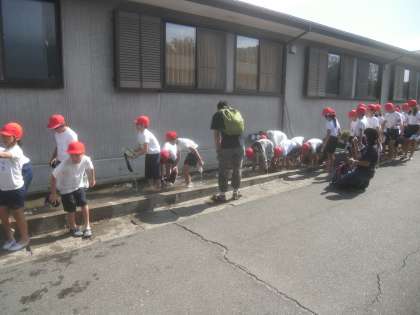 宮崎浜から帰って、足を洗ったり、靴下や靴の砂を落としたりしました。