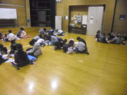 ナイトハイクが終わって、プレイホールで、反省会をしました。