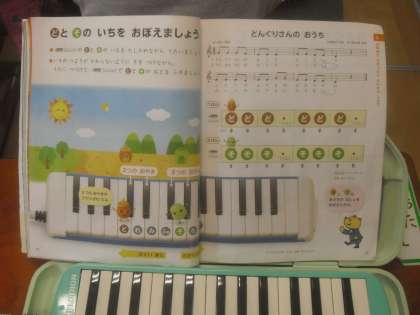 鍵盤ハーモニカで吹くところと,歌を歌うところがあります。