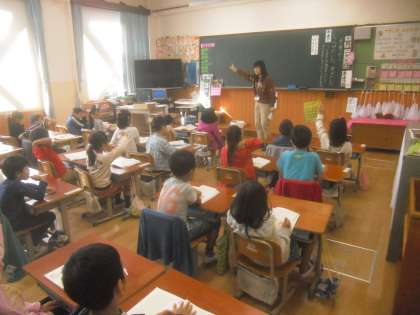 学校にいる生き物や学校で見つけた物を書く学習をします。