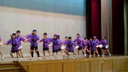 2年生の有志が,運動会でも踊ったエイサー「ダイナミック琉球」を踊りました。