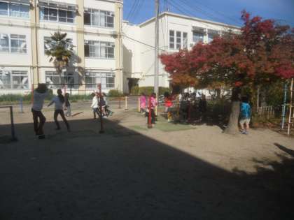 11月16日(水)水曜日は,ロング昼休みです。先週は,雨で,室内の遊びでしたが,今週は,運動場で思いっきり遊べました。