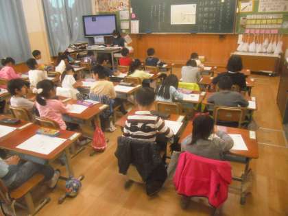 11月16日(水)1年両クラスとも国語は,「かん字のはなし」の学習をしました。