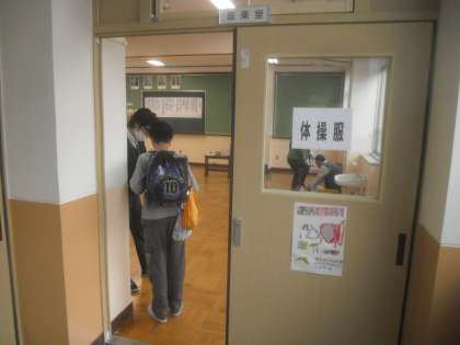 12月5日(月)御室小学校で,双ケ丘中学校の制服・体操服の採寸がありました。