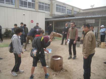 12月11日(日)右京少年補導委員会御室支部主催の餅つき大会が,御室小学校の中庭で,行われました。