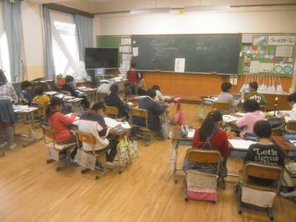 社会科の調べ学習のまとめをしながら,リコーダーのテストをしました。