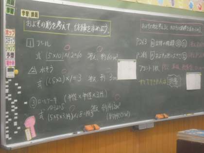 12月14日(水)6年1組の算数は,「およその形を考えて,体積を求める」学習をしました。