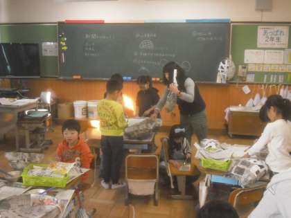 1月18日(水)2年2組の図工は,お面作りをしました。