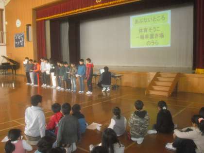 今回は,体育倉庫裏や一輪車置き場裏に,入らないようにすること。
