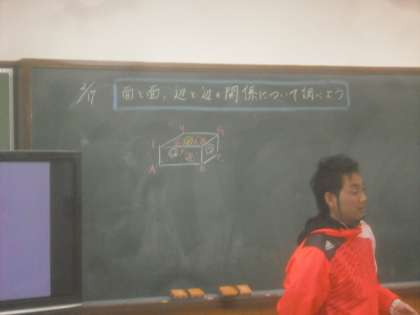 直方体を作って,「面と面」「辺と辺」の関係を考えました。