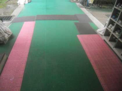 下靴のままピンクの所へ行こうとすると,緑の所を通らないと行けないところがあったので,グレーのマットで,道や島を作って,行けるようにしました。