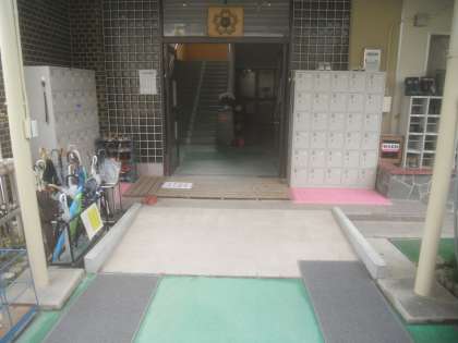 本館前の黄土色のタイル・・・上靴・下靴両方可