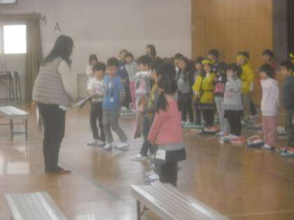 3月14日(火)1年生が,入学式のお迎えの言葉の練習をしています。
