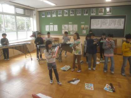 たまたま通りがかった校長先生に,全員で合わせて,合奏を披露しました。