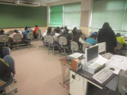 コンピュータ室で自然災害について調べて,新聞にしました。