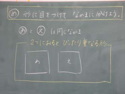 「2つに折るとぴったり重なる形」について,学習しました。