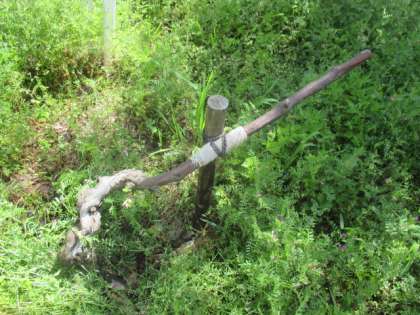 昨年の秋に御室小学校第4代校長香山曙先生が植えられたというブドウを,地域の方にいただき,植えていただきました。根付くかどうか,少し心配していましたが,新芽が出てきました。