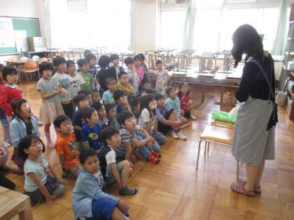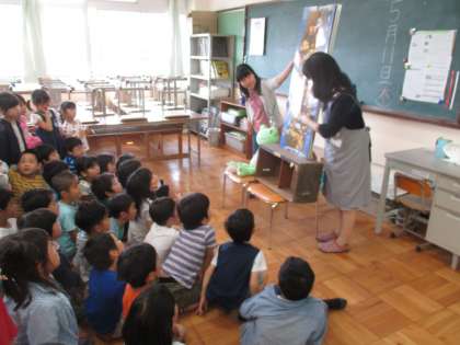 5月11日(木)中間休みんに,学校司書の先生に読み聞かせをしてもらいました。
