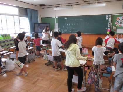 5月11日(木)4年2組の音楽は,「いいことありそう」を歌いました。