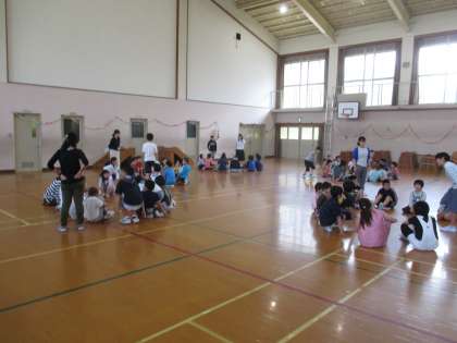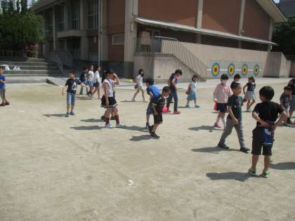 半分は体育館で,あと半分は運動場で遊びました。