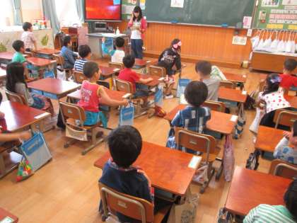 2年生の子ども達が,1年生を案内して,学校中を回ります。