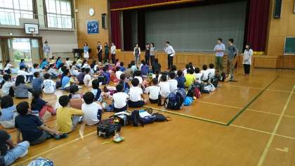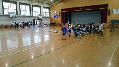 部活動に入る子ども達が全員,体育館に集まって,それぞれの部活の説明を受けました。