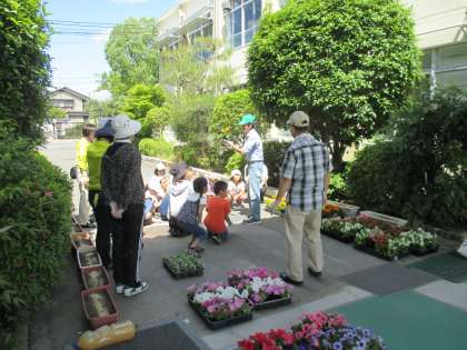 午前9時から土曜学習で,地域の方にお世話になって,花の苗植えをしています。