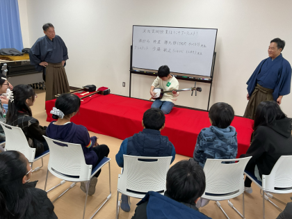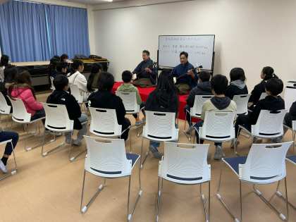 三味線の演奏を聴いたり、実際に三味線を弾く体験を行いました。