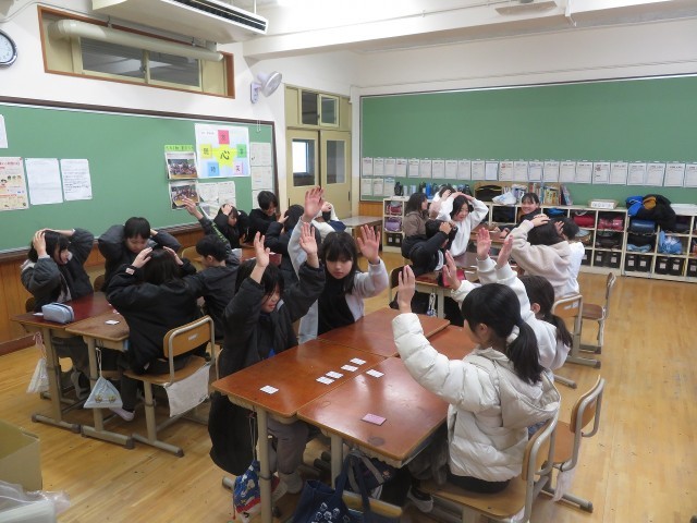 読書週間の取り組みで、「百人一首大会」を行いました。4人グループでルールを確認しながら、正々堂々と戦いました。