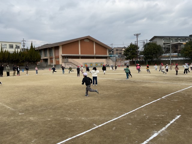 寒い日が続き、外で遊ぶ日が少なくなっているなか、スポーツ委員会の企画よる学年スポーツがありました。みんなで「ふえオニごっこ」をし、寒さを吹き飛ばす勢いで走り回りました。学年みんなでおにごっこをし、とても楽しめました。