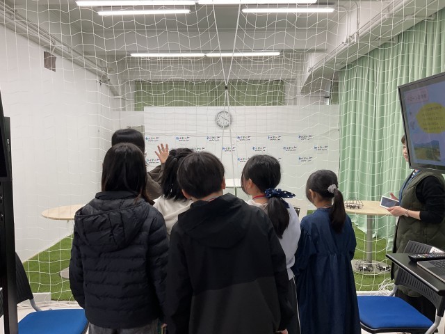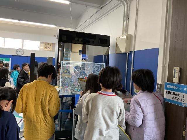 わくわくWORK LANDの活動②では、20年後の未来にあって欲しいモノ(商品)やできるようになってほしいコト(サービス)を開発する学習を行いました。展示コーナで見たり体験したりしながら、未来について考えを深めていました。